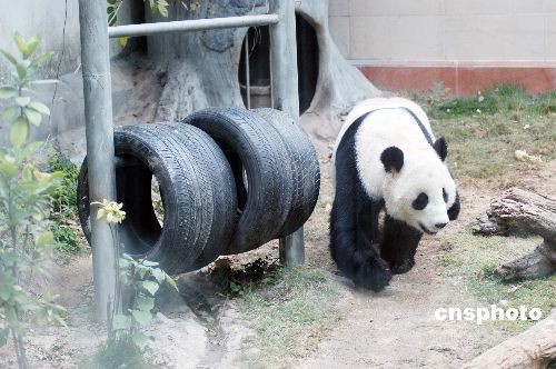 2008年12月3日,生活在福州熊貓世界的四川臥龍地震災(zāi)區(qū)大熊貓悠然自得進(jìn)食。由于福州氣溫與四川比較接近,且有多年實(shí)踐走出來(lái)的一條熊貓飼養(yǎng)成功之路,來(lái)自地震災(zāi)區(qū)四川臥龍的4只大熊貓?jiān)诟V菪茇埵澜缃?jīng)過(guò)近半年的治療休養(yǎng)很快適應(yīng)了福州生活,身體與精神狀態(tài)逐步恢復(fù)到震前情況。中新社發(fā) 張斌 攝