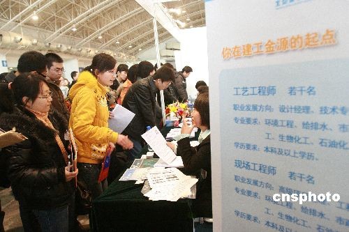 12月14日,2009年北京地區(qū)畢業(yè)研究生專場供需見面、雙向選擇招聘會(huì)在中國國際展覽中心舉辦,本次招聘會(huì)有700余家單位參會(huì),提供14228個(gè)崗位,其中碩士學(xué)歷需求人數(shù)占總需求人數(shù)的92.4%,博士學(xué)歷需求人數(shù)占總需求人數(shù)的7.6%。據(jù)介紹,當(dāng)日參加招聘會(huì)的研究生免費(fèi)入場,僅上午已經(jīng)有兩萬多名研究生前來應(yīng)聘。中新社發(fā) 陳曉根 攝
