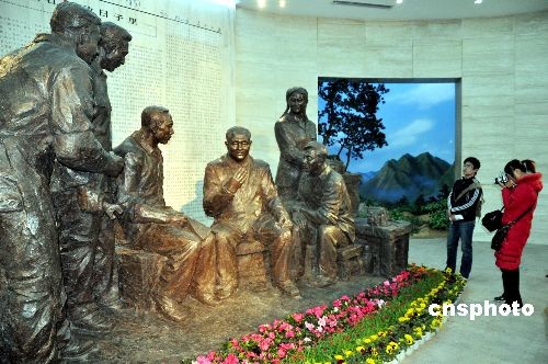 12月18日,一尊長5.8米,寬1.98米,高3米“鄧小平和工人們在一起”大型群雕銅像亮相江西省新建縣“小平小道” 陳列館,吸引著眾多參觀者參觀瞻仰。當(dāng)日,“小平小道”陳列館正式開館對外開放。中新社發(fā) 段長征 攝