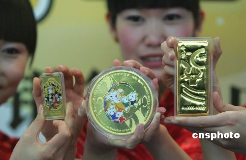 12月23日,中國建設銀行與中國印鈔造幣總公司合作推出的三款黃金投資品牛年生肖如意金(右)、廣州2010年亞洲運動會吉祥物紀念金章(中)、迪士尼牛年生肖金條,同時在北京亮相。中新社發(fā) 沈晨 攝