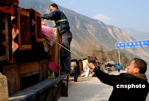 12月26日,北川第一羌寨--貓兒石“吉娜”羌寨竣工,當(dāng)?shù)厍颊用耖_(kāi)始陸續(xù)搬進(jìn)新居。中新社發(fā) 胥輝 攝