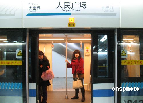 2009年2月3日,上海軌道交通人民廣場站,8號線通過列車同時開啟的雙側(cè)門實現(xiàn)乘客快速換乘。近日,上海軌道交通在8號線人民廣場往耀華路方向啟用新站臺,首次實施單列車雙側(cè)開門的客運組織方式,列車抵達人民廣場站后,同時開啟車廂的兩側(cè)車門,車內(nèi)乘客可自行選擇就近一側(cè)站臺下車。這一新的客運組織方式使客流疏散速度明顯加快。據(jù)上海軌道交通建設(shè)指揮部透露,今年年內(nèi),軌道交通1號線人民廣場站也有望建成類似站臺,加快乘客流通速度。中新社發(fā) 張波wj 攝