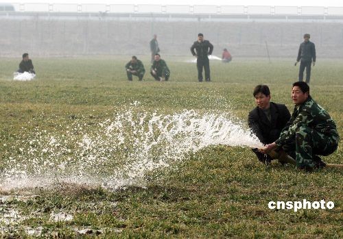 2月4日,河南省禹州市民兵預(yù)備役人員在小呂鄉(xiāng)小呂村幫助村民抗旱澆麥。當(dāng)日,河南省禹州市人民武裝部組織民兵預(yù)備役人員成立30個民兵抗旱服務(wù)隊,深入到全市部分鄉(xiāng)鎮(zhèn),幫助村民抗旱澆麥。據(jù)悉,2月3日,河南省軍區(qū)下發(fā)通知,要求全區(qū)各單位迅速啟動應(yīng)急預(yù)案,充實抗旱裝備器材,組織相關(guān)業(yè)務(wù)技能培訓(xùn),主動與地方政府及水利、氣象等部門溝通聯(lián)系,迅速組織民兵預(yù)備役人員投入抗旱澆麥。中新社發(fā) 牛書培 攝