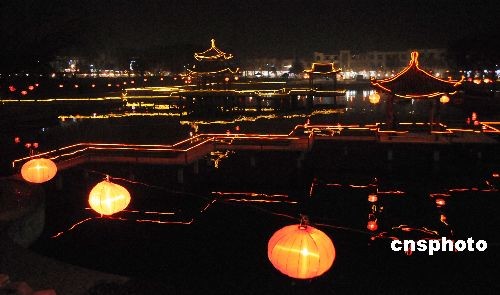 2月7日晚在山東省棗莊市山亭區(qū)太清湖公園內(nèi)拍攝的元宵燈海。連日來(lái),山東省棗莊市山亭區(qū)太清湖公園內(nèi)張燈結(jié)彩,喜迎元宵佳節(jié)。夜幕下的湖中倒影璀璨繽紛,整個(gè)公園仿佛燈的海洋。中新社發(fā) 李宗憲 攝