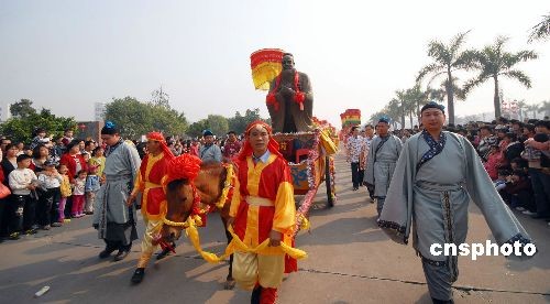2月9日,廣東德慶依古制進行公祭、民祭儀式,萬人肅穆,向孔子圣像朝拜,為該縣鬧元宵活動添上濃厚的儒家文化韻味。中新社發(fā) 談細育 攝