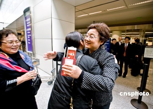 當(dāng)?shù)貢r(shí)間二月十四日,中國(guó)國(guó)務(wù)院僑辦主任李海峰和《四海同春》藝術(shù)團(tuán)結(jié)束了為期十八天的美國(guó)慰?jī)S演出,離開舊金山返京。圖為李海峰離美前向前來(lái)送行的僑胞依依惜別。中新社發(fā) 陳鋼 攝
