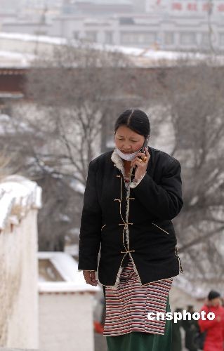 2月25日是藏歷土牛年正月初一,在布達拉宮、大昭寺等拉薩景點,藏族人民正在用手機、數(shù)碼相機、DV等現(xiàn)代數(shù)碼產(chǎn)品通信、拍攝和錄制照片。中新社發(fā) 龍昊 攝
