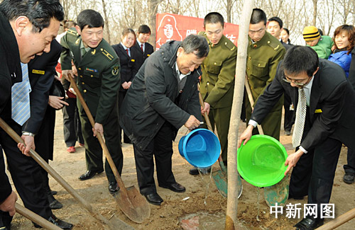 在毛主席為雷鋒同志題詞46周年之際,雷鋒生前戰(zhàn)友喬安山來到河北滄州,和“騰達(dá)雷鋒志愿者”們一起在人民公園栽下愛心樹。他告誡志愿者說:“綠化祖國需要每一個人盡一份力,今天在這里種下綠色,希望雷鋒精神永遠(yuǎn)在這片土地上扎根。 王少華 攝