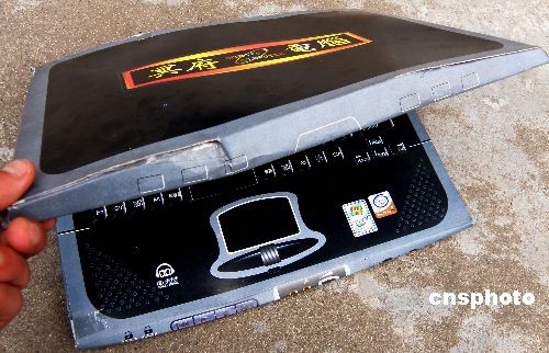 2009年3月18日,湖北宜昌市某祭祀品批發(fā)市場上出售的“冥府筆記本電腦”。這種“冥府電腦”采用硬紙板材料制作,上面印有精美的圖案標志。據商家披露,農歷清明節(jié)臨近,有很多市民購買這種售價10元一臺的“冥府電腦”去祭祀逝去的親朋好友。中新社發(fā) 劉君鳳 攝