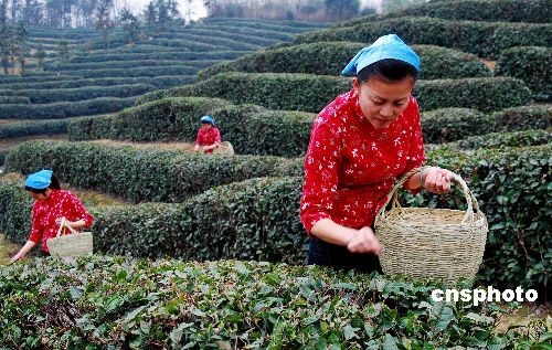 3月19日,廬山云霧茶各生產(chǎn)基地開始采摘新茶。這也意味著品質(zhì)最好的廬山云霧茶新茶“明前茶”將開始進(jìn)入市場(chǎng)。廬山云霧茶因日照霧薰,其味清香異常,經(jīng)久不散,是中國有名的特種茶,以“味醇、色秀、香馨、液清”而久負(fù)盛名,連續(xù)兩屆獲中國國際茶業(yè)博覽會(huì)金獎(jiǎng)。中新社發(fā) 胡國林 攝