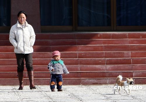 3月20日,一位媽媽帶著孩子在雪后的拉薩街頭沐浴陽光,當日是春分,春分意味著春天真正來到了大家身邊。但由于特殊的地理位置,拉薩真正進入春天,還要等20多天。中新社發(fā) 杜洋 攝