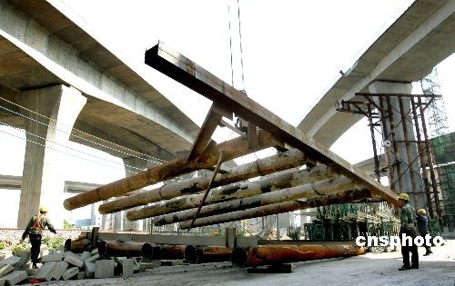 三月二十三日,福州市最大的高速公路互通立交橋——馬尾樞紐互通主體工程六十八座墩身和承臺(tái)已全面完成,將力爭(zhēng)在年底竣工。馬尾樞紐互通將興建四條高位匝道,匝道橋總長二千九百多米,位于沈海高速公路馬尾段,是福州機(jī)場(chǎng)高速公路二期工程的起點(diǎn),通過青洲大橋與機(jī)場(chǎng)高速公路一期相連接,形成國際機(jī)場(chǎng)快速通道。中新社發(fā) 楊婀娜 攝