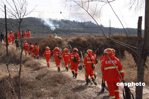 2009年3月28日下午2時(shí)左右,山西省盂縣東梁鄉(xiāng)東梁村騎龍山發(fā)生森林火災(zāi)。 森林火災(zāi)發(fā)生后,當(dāng)?shù)卣⒐、林業(yè)、醫(yī)務(wù)等部門第一時(shí)間趕到現(xiàn)場(chǎng),組織滅火,并啟動(dòng)了相關(guān)應(yīng)急預(yù)案。當(dāng)?shù)爻鰟?dòng)數(shù)百名干部群眾撲火,陽泉市武警也趕赴現(xiàn)場(chǎng)增援。由于火勢(shì)兇猛,在附近的村莊都能聽到火燒山林的聲音,山火的灰塵甚至飄到了最近的溫家山村。截至發(fā)稿時(shí),沒有人員傷亡報(bào)告。中新社發(fā) 程瑜 攝