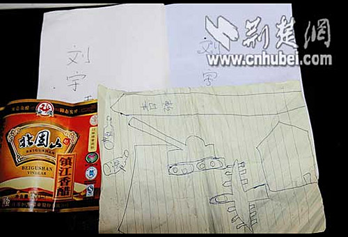 昨日(21),洪山區(qū)(武漢)南湖工商所接到舉報(bào),在該區(qū)紅旗村一臨時(shí)搭建的民房中查獲一個(gè)制假作坊,收繳大量假名牌醋等。據(jù)查,作坊老板劉某是安陸人,今年2月起與妻子在此租房,以每袋2毛錢(qián)購(gòu)進(jìn)散裝醋精,兌水炮制“名醋”,低價(jià)賣給周邊副食店和小超市。執(zhí)法人員現(xiàn)場(chǎng)發(fā)現(xiàn)一幅筆法幼稚的漫畫(huà):一輛坦克的大炮直指2瓶“名醋”。劉某的妻子稱,這是她11歲的兒子為諷刺他們制假而作。(張樂(lè)克 徐永峰 章敏)
