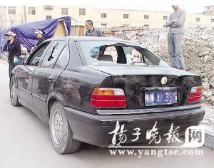 記者接到報料后趕到柴園北路148號的現(xiàn)場,周圍一片均是拆遷工地,基本沒有居民,而民警已陸續(xù)撤離現(xiàn)場,一輛拖車將這輛牌號為粵W的寶馬轎車拖離現(xiàn)場。這輛寶馬車的前后擋風玻璃及左右車窗玻璃均被砸爛。現(xiàn)場一位目擊者告訴記者,下午有市民路過此地時,看到了這輛車窗玻璃均被砸的寶馬車停在旁邊,便好奇地透過被砸的破洞往里張望,突然發(fā)現(xiàn)靠近駕駛員座位的車門里面,露出了一截用紅布包裹的東西,細看之下,像是一個槍柄,于是立即報警。很快,當?shù)嘏沙鏊窬s到現(xiàn)場,負責刑偵的民警也帶著勘察工具趕來了,然而,拿出來一看,卻是一把玩具手槍,一扣扳機槍口冒出了火,原來是個手槍式打火機,讓警方虛驚了一場。
