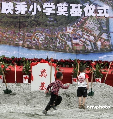 5月11日,四川省汶川縣映秀鎮(zhèn)災(zāi)后恢復(fù)重建項(xiàng)目開工暨映秀小學(xué)新校舍奠基儀式舉行。映秀小學(xué)在地震中校舍徹底倒塌,孩子們?cè)诎宸可险n至今。新校舍由深圳證監(jiān)局捐建,用地10446平方米,其中綠地面積大于35%,總投資2951.6萬元,擬建6層,可容納12個(gè)班,學(xué)校運(yùn)動(dòng)場(chǎng)作為臨時(shí)避災(zāi)場(chǎng)地。預(yù)計(jì)工期5個(gè)月。 同期開工的還有包括映秀幼兒園、中灘堡大道、漁子溪大橋和映秀鎮(zhèn)安居房等映秀鎮(zhèn)災(zāi)后恢復(fù)重建項(xiàng)目。中新社發(fā) 張曉理 攝
