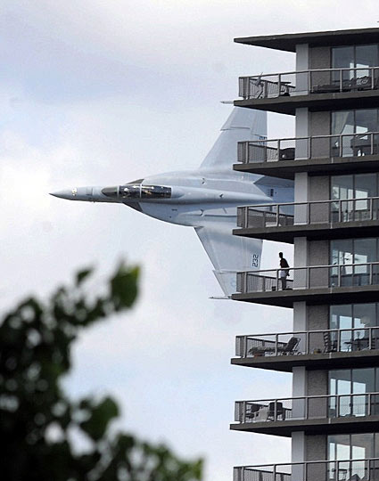 一位居民激動(dòng)地說,“我簡直不敢相信這架戰(zhàn)斗機(jī)可以飛得這么低,而且離我們這么近,我甚至清楚地看到機(jī)上飛行員在向我們招手!”