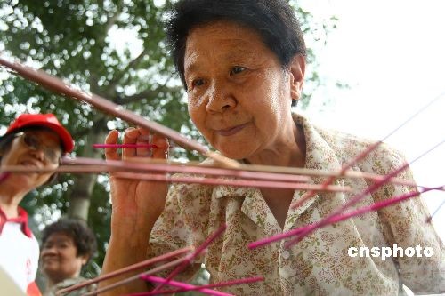 7月11日,在北京安貞社區(qū),一場名為“懷憶童年”的趣味運(yùn)動會在小區(qū)內(nèi)舉行,滾鐵環(huán)、耍拐、彈球兒、挑棍兒、抽漢奸、打包兒、拍三角等十幾個項目吸引了社區(qū)百余位老年人的熱捧,報名參賽運(yùn)動員的平均年齡達(dá)到了70歲。據(jù)社區(qū)居委會工作人員介紹,懷舊運(yùn)動會能讓老年人更好的強(qiáng)身健體,更能追憶美好童年。中新社發(fā) 富田 攝