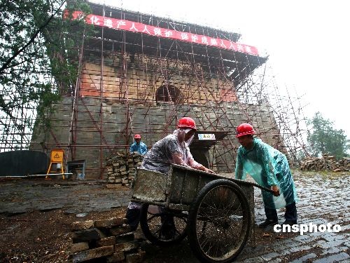 7月17日,已經(jīng)有五百年歷史的明十三陵茂陵啟動歷史上規(guī)模最大的修繕,工程投資1200多萬元,預(yù)計明年完工。據(jù)悉,經(jīng)過多年的風(fēng)雨侵蝕,明茂陵已殘破不堪,其主要建筑之一的明樓更是破損嚴重。此次大修將對陵門、陵墻、明樓等重點部分進行修繕,并本著修舊如舊的原則,按照歷史資料恢復(fù)其原貌,不過修繕僅針對地上部分進行,不涉及地下部分。中新社發(fā) 富田 攝