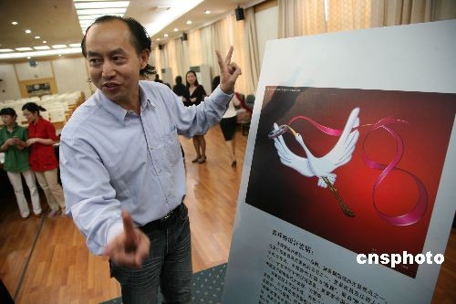 5月18日,“第十八屆中國(guó)金雞百花電影節(jié)”在南昌舉辦新聞發(fā)布會(huì),正式公布本屆電影節(jié)吉祥物、LOGO、主題語(yǔ)等信息。吉祥物“巍巍”以鄱陽(yáng)湖候鳥(niǎo)白鶴為原型,吉祥物設(shè)計(jì)者之一、南昌大學(xué)藝術(shù)與設(shè)計(jì)學(xué)院副院長(zhǎng)周曙教授在現(xiàn)場(chǎng)解釋吉祥物設(shè)計(jì)內(nèi)涵。本屆電影節(jié)將于今年十月中旬在江西省南昌市舉行。中新社發(fā) 張見(jiàn)悅 攝