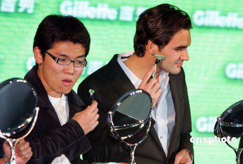 11月9日,“網(wǎng)壇天王”費德勒在上海出席一家品牌主辦的球迷見面活動,并在現(xiàn)場主持為數(shù)一千人的剃須成人禮儀式。中新社發(fā) 湯彥俊 攝