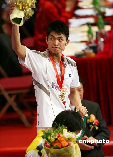 十二月二日,頭號(hào)種子林丹在二零零七中國(guó)香港羽毛球超級(jí)賽決賽中以二比一戰(zhàn)勝馬來西亞名將李宗偉,奪得冠軍。中新社發(fā) 武仲林 攝
