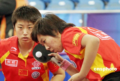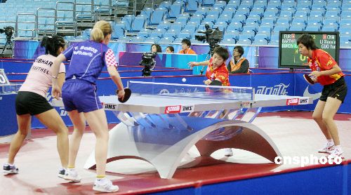 12月18日,奧運(yùn)測試賽乒乓球女團(tuán)比賽揭幕。第三場進(jìn)行的是雙打比賽,中國隊(duì)派出郭躍/李曉霞這對雙打組合,而歐洲聯(lián)隊(duì)一方則是鮑羅斯和孫禎琦的組合,雖然首局在拿到局點(diǎn)的情況下被對手以12比10逆轉(zhuǎn),但郭躍和李曉霞調(diào)整心態(tài)的速度非?,她們以11比7,11比5和11比2連下三局,以3比1戰(zhàn)勝鮑羅斯/孫禎琦,從而使得中國女隊(duì)以3比0輕取歐洲聯(lián)隊(duì),取得本次邀請賽的開門紅。中新社發(fā) 博芽影像 攝