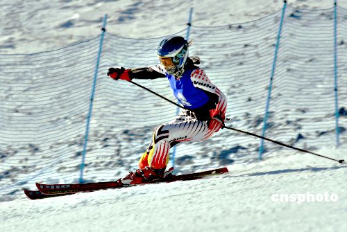 1月20日上午10時,在哈爾濱亞布力高山滑雪舉行的女子超級大回轉(zhuǎn)滑雪比賽,經(jīng)過緊張角逐,齊齊哈爾選手夏麗娜獲得冠軍,成績56.9秒。中新社發(fā) 姚庭山 攝