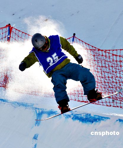 1月20日,全國第十一屆冬季運動會單板滑雪U型場地團體賽總決賽在亞布力進行。經(jīng)過角逐,女子團體冠軍由哈爾濱一隊劉佳宇、潘雷、蔡雪桐陳、陳旭獲得,成績分別為34.6、31.2、30.1、28.8男子團體冠軍由解放軍隊黃世英、曾小燁、于洪智、岳嶺獲得。成績分別為39.3、37.5、31.4、28.9、二三名分別被:(女)長春隊、解放軍隊(男)撫順市一隊、哈爾濱市一隊獲得。中新社發(fā) 姚庭山 攝