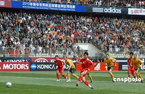 圖:中澳國足戰(zhàn)平 邵佳一憾失點球