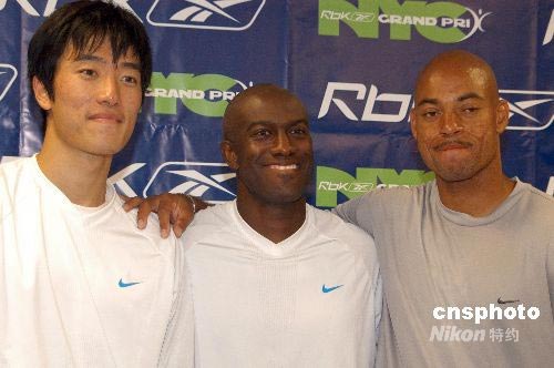 北京時間7月6日消息,在當日進行的美國田徑奧運選拔賽110米欄爭奪中,劉翔最偉大的對手阿蘭-約翰遜小組賽傷勢復發(fā),未能完成比賽,七次世界冠軍沖擊北京奧運的征程提前劃上句號。另一位勁敵,曾跑出12秒90的阿諾德也在1/4決賽搶跑被罰出,將缺席北京奧運。資料圖為劉翔、阿蘭-約翰遜(中)、阿諾德(右)三人的合影。中新社發(fā) 劉小青 攝