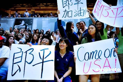 當(dāng)?shù)貢r(shí)間7月31日,郎平和美國(guó)女排在加州大學(xué)伯克利分校的排球館做啟程赴北京前的最后熱身時(shí),受邀和華人華僑球迷合影。郎平將率美國(guó)國(guó)家女排于美西時(shí)間8月1日從舊金山啟程赴中國(guó)參加2008年夏季奧林匹克運(yùn)動(dòng)會(huì)。美國(guó)國(guó)家女排目前在國(guó)際排名為第四位。在1984年和1992年的奧運(yùn)會(huì)上,分別獲得銀牌和銅牌。中新社發(fā) 陳鋼 攝