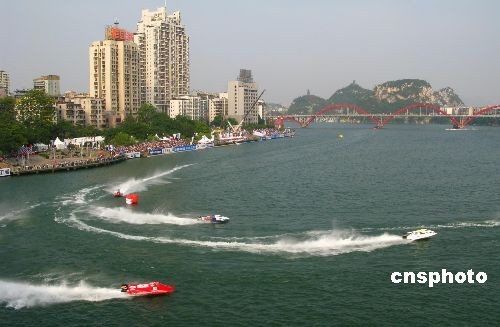 10月12日,2008F1摩托艇世界錦標賽中國柳州站大獎賽落幕。來自12個國家19支隊伍經(jīng)過激烈角逐,卡塔爾隊的美國名將杰伊.普萊斯發(fā)揮出色,勇奪本站冠軍。塔斯克兄弟競技隊大衛(wèi)·塔斯克獲得亞軍。意大利選手法比奧·卡姆帕拉獲第三。中新社發(fā) 曹偉軍 攝