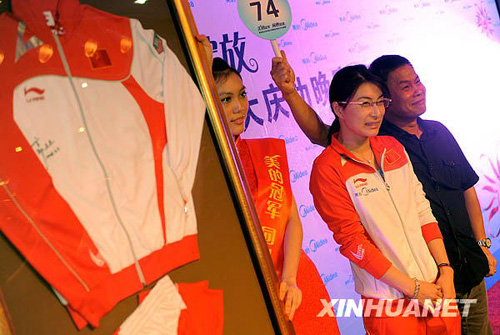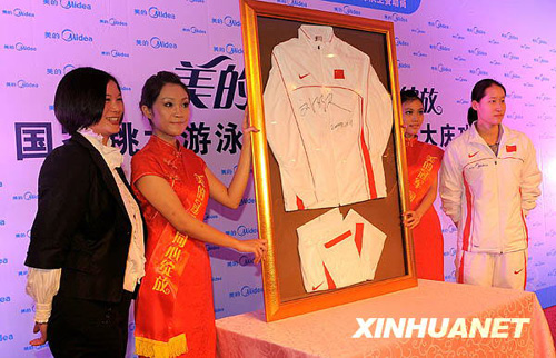 10月12日,中國國家跳水隊(duì)、游泳隊(duì)在廣東順德舉行“慶功慈善拍賣晚宴”。奧運(yùn)冠軍郭晶晶、劉子歌等將所拍賣運(yùn)動(dòng)裝備61.4萬元捐贈(zèng)給中國紅十字會(huì)“奧運(yùn)之星”保障基金。新華社記者陳曉偉攝