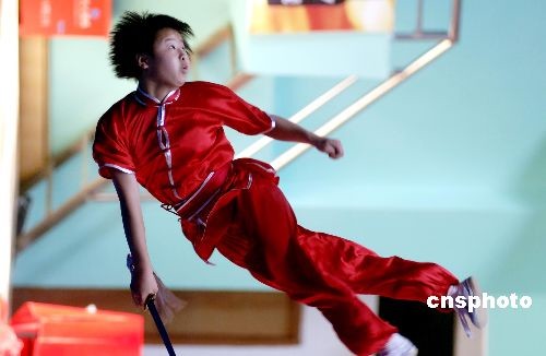 10月28日,武術(shù)女子選手進(jìn)行劍術(shù)比賽。第六屆全國農(nóng)民運動會武術(shù)比賽在福建省泉州市體育中心吳家熊國術(shù)館進(jìn)行,武林高手匯集于此,展示高超的國術(shù)技藝。中新社發(fā) 王東明 攝