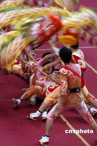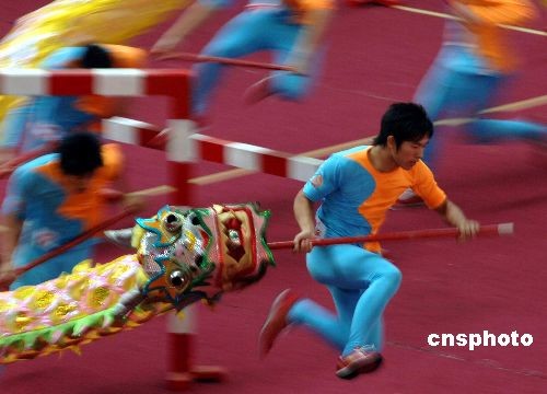 圖:農(nóng)運會舞龍舞獅比賽出神入化