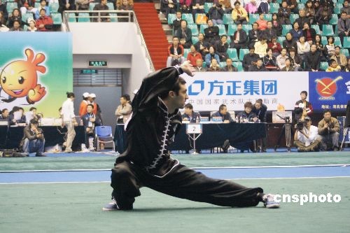 10月31日,第三屆世界傳統(tǒng)武術(shù)節(jié)在湖北武當(dāng)山下十堰市體育館開賽,來自全球六十九個(gè)國(guó)家和地區(qū)的一百六十五支代表隊(duì)、兩千多名武術(shù)參賽隊(duì)員參加了比賽。國(guó)際武聯(lián)官員和市領(lǐng)導(dǎo)親臨現(xiàn)場(chǎng)觀摩比賽。中新社發(fā) 袁野 攝