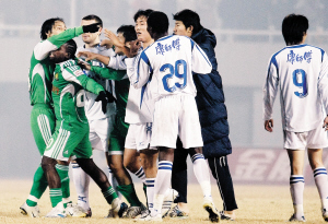 在昨晚的“京津?qū)υ挕敝校鲌鲎鲬?zhàn)的北京國安隊2比2戰(zhàn)平天津泰達(dá)隊,雙方各得1分。在比賽的最后階段,濃重的火藥味和兩度群體沖突也給這場比賽帶來了不和諧音。比賽即將結(jié)束時,郭輝和天津隊譚望嵩之間發(fā)生了肢體接觸。據(jù)郭輝本人透露,當(dāng)時譚望嵩試圖對他飛鏟,在被郭輝躲開后,譚望嵩破口大罵。更不和諧的一幕發(fā)生在賽后,天津隊球員走下場時,以隊長曹陽為首,高舉雙手向看臺上的北京球迷豎起了中指。記者親眼看到,直到走進(jìn)球員通道,曹陽才將高舉的雙臂放下。(記者 周蕭)