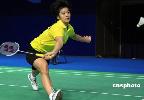 11月21日,在上海進(jìn)行的2008年中國羽毛球公開賽女子單打1/4決賽中,中國小將王琳以2比0輕取馬來西亞選手黃佩嫻,率先晉級四強(qiáng)。中新社發(fā) 湯彥俊 攝