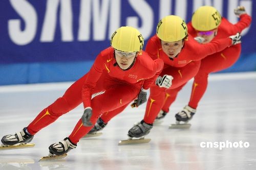 11月30日,短道速滑世界杯北京分站賽女子500米決賽結(jié)束,我國三名選手劉秋宏,付天余,趙楠楠以絕對(duì)優(yōu)勢包攬金銀銅牌。中新社發(fā) 王韶驊 攝