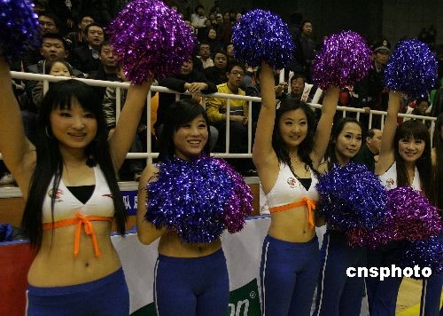 圖為籃球?qū)氊愒趫?chǎng)邊助威。