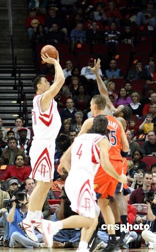 當(dāng)?shù)貢r(shí)間12月5日晚,姚明擔(dān)綱的休斯頓火箭以131比112戰(zhàn)勝金州勇士,姚明全場(chǎng)貢獻(xiàn)了賽季最高的33分,他還搶下了14個(gè)籃板,助攻5次。中新社發(fā) 歐文 攝