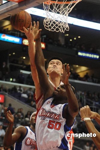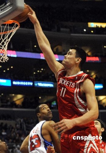 圖為姚明扣籃得分。