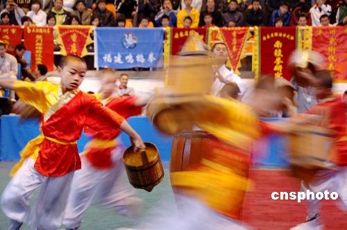 十二月十四日上午,“二00八閩臺南少林傳統(tǒng)武術(shù)交流大賽暨學術(shù)交流會”在福州市開幕。中新社發(fā) 鄭祚聲 攝