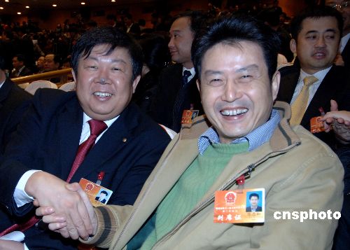 一月十日,全國人大代表、中國女排主教練陳忠和(右一)列席福建省第十一屆人民代表大會第二次會議。當(dāng)日,福建省第十一屆人民代表大會第二次會議在福州開幕。中新社發(fā) 劉可耕 攝
