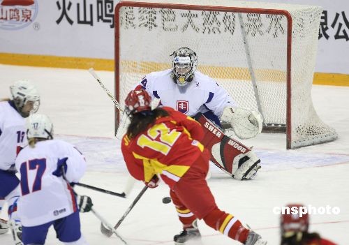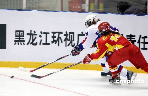 2月18日,第24屆國際大學(xué)生冬季運動會在哈爾濱冰球館拉開戰(zhàn)幕。當(dāng)日大冬會女子冰球比賽將在哈爾濱冰球館進行3場比賽,首場斯洛伐克隊(白)對中國隊(紅),比賽進行到10時20分中國隊進首球。中新社發(fā) 姚庭山 攝