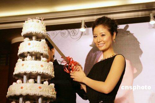 1月22日,華誼兄弟傳媒集團(tuán)為旗下藝人林心如舉辦名為“林心如十年有成記者會(huì)”。林心如身著有臺(tái)灣著名設(shè)計(jì)師陳季敏特別為其定制的禮服,世界知名珠寶“BVLGARI”寶格麗也特別由國(guó)外調(diào)來(lái)了精致的彩色珠寶烘托林心如的高貴氣質(zhì)。華誼兄弟總裁王中軍作為特別嘉賓親臨現(xiàn)場(chǎng),他特別定制了一個(gè)十層的蛋糕送來(lái)給心如,寓意心如十年成就,而且還會(huì)層層高。中新社發(fā) 一可 攝