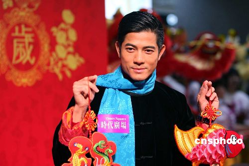 二月十一日,香港影視紅星郭富城出席時代廣場舉行的“金龍醒獅賀新歲”慶典,向商戶和顧客拜年。中新社發(fā) 洪少葵 攝