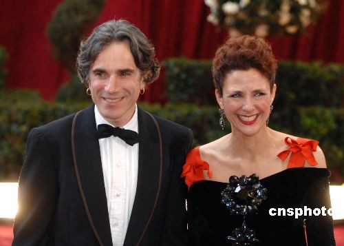 圖:奧斯卡影帝丹尼爾·戴-劉易斯攜妻走過(guò)紅地毯