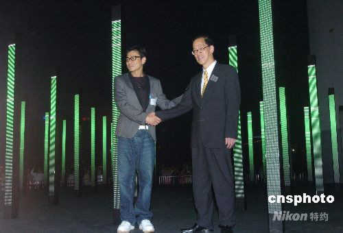 四月十一日晚,由香港藝術(shù)發(fā)展局主辦、Microwave籌辦的“燈陸‧亞高高”聲光互動(dòng)媒體藝術(shù)展在香港尖沙嘴星光大道開幕,民政事務(wù)局局長曾德成與影星劉德華在揭幕后,率先體驗(yàn)由英國著名國際藝術(shù)團(tuán)隊(duì)United Visual Artists (UVA)創(chuàng)作的“Volume”所帶來的視聽覺體驗(yàn)。中新社發(fā) 鄧慶樂 攝